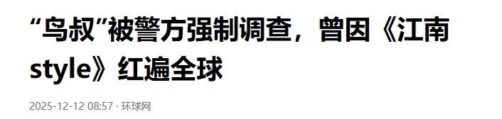 25. 信源来源:2025-12-12 环球网 “鸟叔”被警方强制调查,曾因《江南style》红遍全球